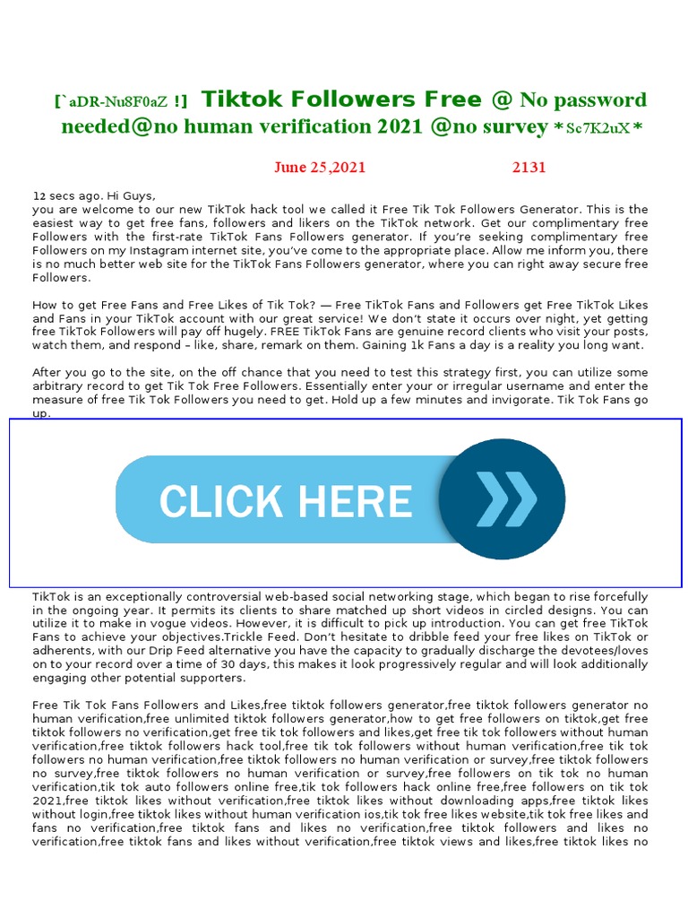 Tiktok Followers Free At No Password No Human Verification 2021 No Survey Pdf Mobile App User Computing